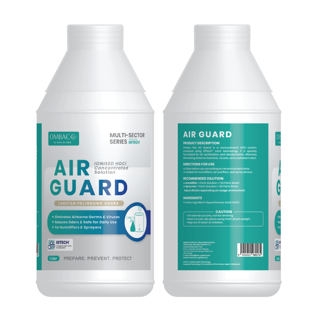 Designed for homes, offices, healthcare facilities, and public spaces, Ombac+ Air Guard purifies the air without releasing harmful chemicals, making it safe for humans, pets, and the environment.